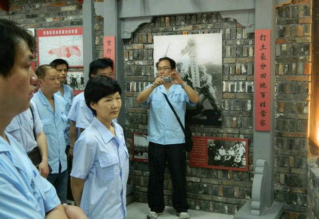 三、憶崢嶸歲月,緬懷革命先烈伴隨著淅瀝小雨,所有黨員在烈士紀(jì)念館前集合,在烈士紀(jì)念館工作人員的帶領(lǐng)下,隨即開始了正式參觀。烈士紀(jì)念館里,陳列著許多珍貴的歷史文物,有革命烈士使用過的步槍、手榴彈、刺刀等,仿真的場景和人物蠟像,生動地展示了當(dāng)時革命的艱苦歲月。一件件珍貴的遺物,一張張模糊的照片,一段段翔實(shí)的文字,讓我門腦海中那模糊的艱難歲月再一次清晰起來。